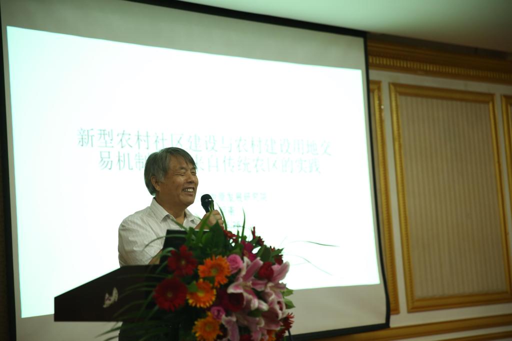 河南大学中原发展研究院经理耿明斋教授发表了“新型农村社区建设与农村建设用地交易”的演讲。耿教授介绍到,从2011年下半年到2013年上半年,河南开展了大规模的农村新型社区建设。几个村统一规划、拆迁,将农民集中安置在“新型农村社区”。