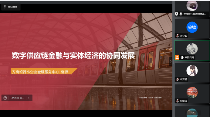 本次讲座主要分为两部分。首先,訾总对供应链金融及其发展阶段、供应链金融的主要模式、供应链金融的政策变迁等进行介绍,并结合齐商银行发展供应链金融的实践,从产品、技术、平台和模式的角度进行了颇为细致的讲解,最后对数字供应链金融未来的生态化发展趋势进行了展望。齐商银行供应链金融业务的数字化转型走在了行业前列,通过区块链、大数据、物联网等金融科技的应用构建金融生态,借助在线供应链平台、物流平台和账户体系的有机整合,使供应链金融服务嵌入交易、物流、融资等供应链各个流程环节中,为核心企业上下游供应链的不同节点提供“金融+IT+物流+运营”等的一站式综合服务,逐步完成了从自建场景、嵌入场景到输出场景等不同交易场景的发展过渡,实现了资金流、商流、信息流、物流的四流合一,使金融更加高效地服务实体经济。訾总的生动讲解为同学们了解数字供应链金融行业前沿知识提供了宝贵的机会,也为同学们未来在数字供应链金融理论和实践中的应用提供了思路借鉴,同学们收获满满。接着,由三位国际商务专业的硕士生同学和一位互联网经济学专业的博士生同学分享了“数字供应链金融”领域的相关文献,訾总对同学们分享的文献做了简要点评,并结合公司自身业务补充了相关内容。