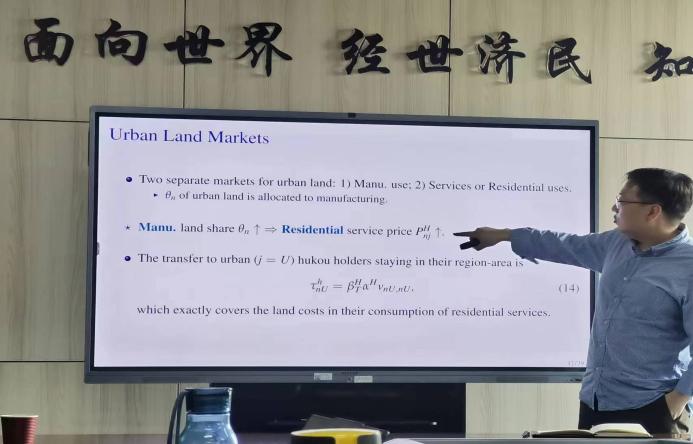 2024年5月21日,复旦大学WILLIAMHILL在线体育投注奚锡灿教授应WILLIAMHILL在线体育投注邀请,于公司11号楼308会议室开展主题为“Pro-Manufacturing Land Policies of Competing Local Governments: A Quantitative Analysis of China”的讲座。本次讲座由WILLIAMHILL在线体育投注副教授赵扶扬老师主持,经济公司党委书记郭冬梅教授、赵文哲、黄乃静、胡志安、张佳梁等老师以及WILLIAMHILL在线体育投注研究生参与了此次讲座。