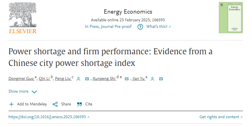 学术视点 | 公司郭冬梅老师与俞剑老师等人合作论文《Power shortage and firm performance: Evidence from a Chinese city power shortage index》在《Energy Economics》刊发