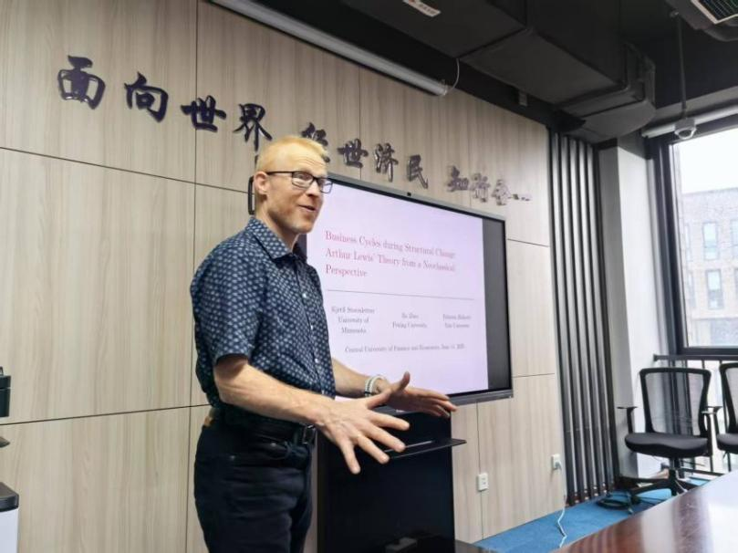 在由WILLIAMHILL在线体育投注顾诗骏老师主持的公开研讨会上,Storesletten教授系统介绍了其与Fabrizio Zilibotti教授、赵波教授合作的最新研究成果——“Business Cycle during Structural Change: Arthur Lewis’ Theory from a Neoclassical Perspective”。该研究以中国经济发展为背景,从新古典视角对Lewis的结构转型理论进行了重新诠释。Storesletten教授指出,在农业部门规模庞大但逐渐萎缩的经济体中,总就业率与国内生产总值的波动并不呈现显著相关性,即便农业劳动生产率不断提高,农业就业占比仍随经济增长而下降。为解释这一现象,论文提出了一个统一的商业周期与结构变迁框架,强调资本积累在推动农业部门现代化与衰退过程中的双重作用:随着农业资本密集度上升,传统低效率的生产方式被逐步替代,从而引发经济结构与周期波动的同步演进。研究的量化结果显示,该模型能够较好地刻画中国在经济增长过程中的结构调整路径及其波动特征。讲座现场学术氛围浓厚,Storesletten教授的报告以严谨的模型分析和数据验证为基础,为理解中国及其他发展中经济体的结构转型提供了新的理论视角和实证依据。