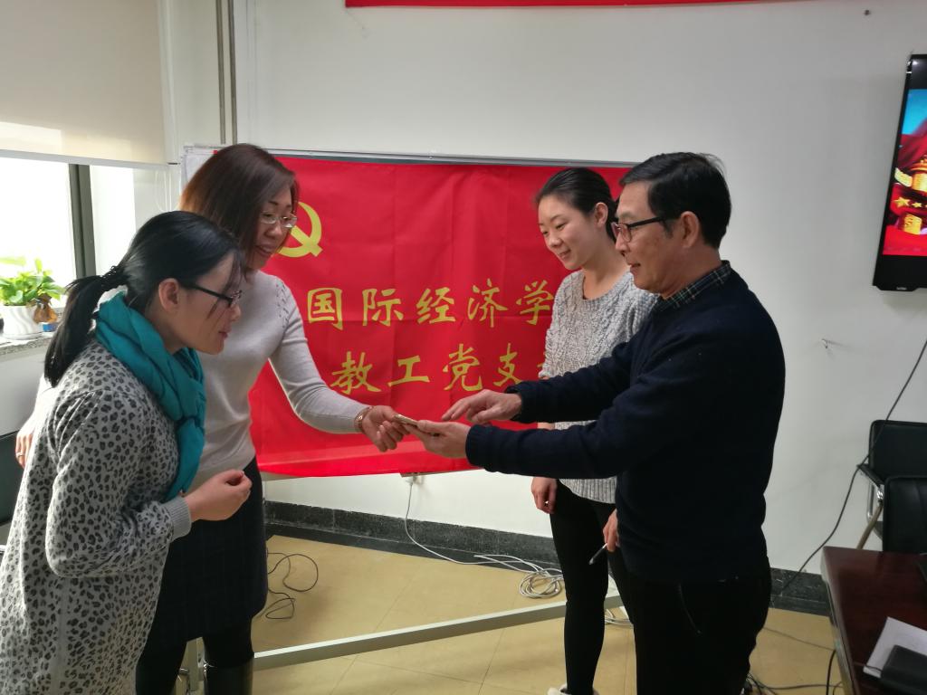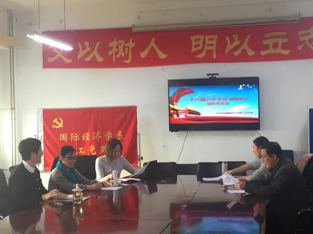 在讨论如何落实十八届六中全会精神,加强教师师德建设、发挥教师党员的先锋模范作用、如何更有效地开展员工思想政治教育工作时,国际经济学系党支部书记于爱芝教授提出,“教师要重视自身的思想政治觉悟和道德修养,要作员工成长的表率。现在家里还珍藏着读研时导师赠送的一套原版《资本论》,抽空还要拿出来认真研读。教师要重视个人的积累,要争取总书记期待的‘四有之师’”。