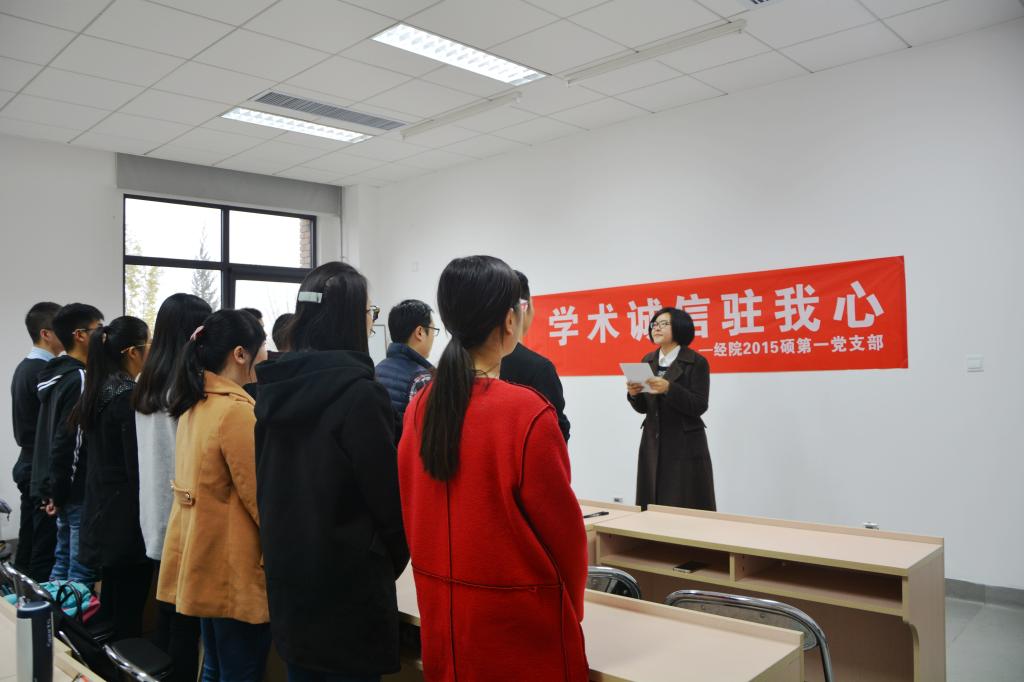 为铭记践行社会主义核心价值观—诚信,端正学术之风,2015硕第一党支部开展了“学术诚信驻我心主题教育活动”。活动在WILLIAMHILL在线体育投注1号楼进行,WILLIAMHILL在线体育投注的任老师为同学们做了学术诚信的讲座,任老师用生动的例子为我们讲述了诚信的价值内涵,剖析了学术诚信应遵守的原则,活动的参与者进行积极的发言,讨论对学术诚信的认知,最后集体进行了学术诚信宣誓,并且在横幅上签名留念,活动取得了良好的效果,学术诚信驻进每位同学之心,人人都争当诚信的代言人。