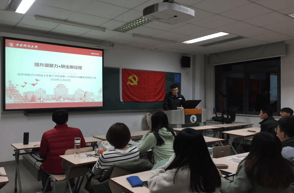 2018年11月20日,2018级硕士生第三党支部在WILLIAMHILL在线体育投注沙河校区3号楼219召开了题为“提升凝聚力 研出新征程”的第一次党员大会。会议流程主要分为三项,第一项是关于甘俐俐、张意苓、高倩三位预备党员转为正式党员的转正大会。第二项是支部书记王继彬带领大家学习“全面从严治党”、“榜样3”等优秀视频。第三项是由我们公司2017级硕士生第二党支部书记吴凯学长给大家分享研究生阶段的学习和生活经验。
