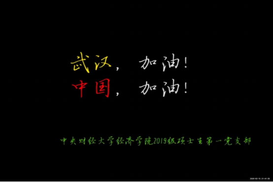 2019级硕士生第一党支部于2月15日开展“经济人的战‘疫’”线上主题党日活动。本次活动由党支部书记翁慧敏主持,支部全体党员、2019级硕士生积极分子、入党申请人参加。会议邀请经济史学系教工党支部伏霖老师、政治经济学系教工党支部窦宗玥老师在线参与并点评。