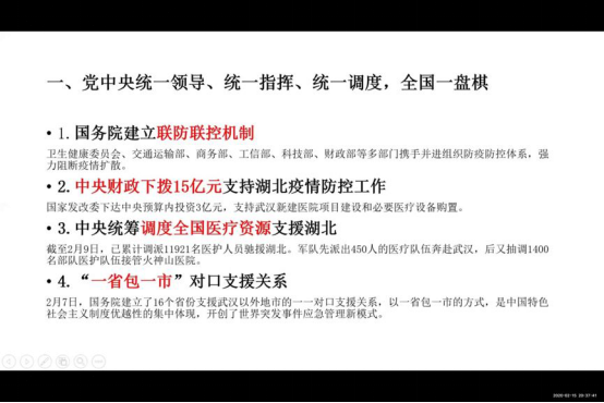 疫情就是命令,防控就是责任!自疫情暴发以来,经济公司党委严格贯彻上级部署,组织全院师生弘扬“担当责任、勇往直前”的中财精神,充分发挥共产党员的先锋模范作用,广大党员干部带头讲政治、讲科学、讲防护、讲担当,将抗击疫情切实转化为践行初心使命的行动自觉。在公司党委的号召下,党支部开展了具有特殊意义的线上党日活动。