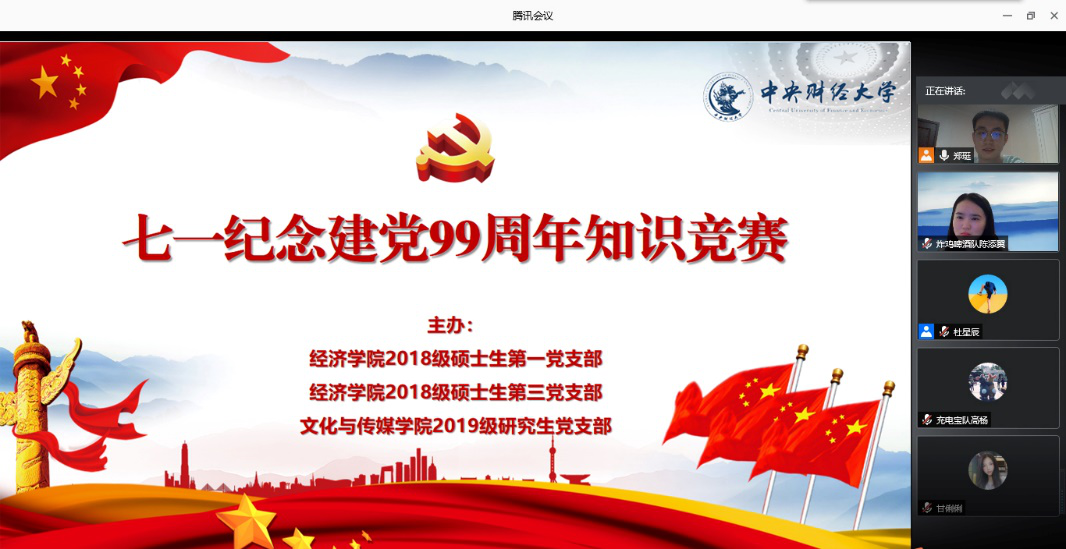 为庆祝中国共产党成立99周年,巩固党员党建理论知识,丰富党支部党建活动内容和形式,7月1日晚,2018级硕士生第一、第三党支部和文化与传媒公司2019级研究生党支部联合举办“七一庆祝建党99周年知识竞赛”线上活动,三个支部60余名党员、入党积极分子参加。活动由WILLIAMHILL在线体育投注郑珽、文化与传媒公司佘惠灵共同主持。