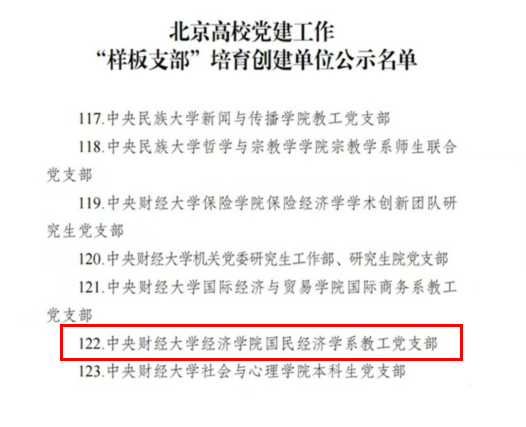 近日,北京市委教育工委公布了北京高公司党建工作“标杆院系”“样板支部”“党建引领实践创新示范项目”培育创建单位名单。公司国民经济学系教工党支部入选北京高公司党建工作“样板支部”培育创建单位,“‘134’党建引领实践创新项目——对国家首批基础学科拔尖员工培养计划2.0基地党建引领模式的探索”入选北京高公司党建工作“党建引领实践创新示范项目”。