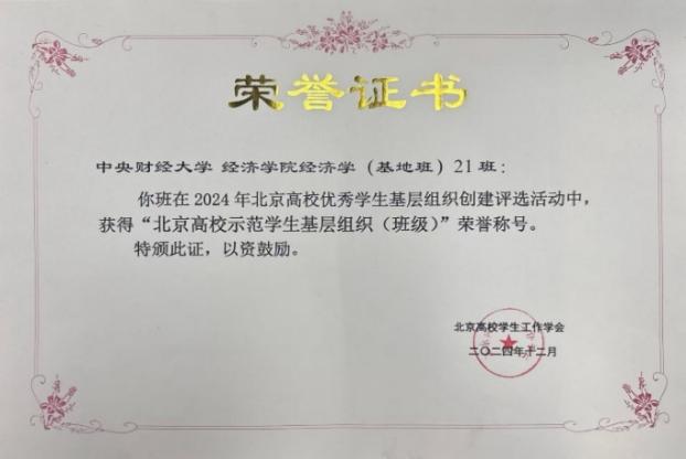 此次获评“北京高校示范员工基层组织(班级)”的经济学(基地班)21 班,是公司基层组织建设的优秀典范。在党团建设、志愿服务、学术科研以及继续深造等多方面,该班均取得令人瞩目的成绩。学业上,班级10名员工保研率达100%,共修读580余门课程,其中151门课程成绩达95分以上,342门课程成绩达90分以上,2023--2024学年班级学分加权平均分高达92.04分。综合素质培养方面,基地2021级员工累计获得国家级奖项17人次,省部级奖项10人次,校级奖项50余人次、院级奖项26人次。还荣获2023年校级“五四红旗团支部”荣誉称号。志愿服务方面,本科前三年累计完成志愿服务时长超过550小时,充分展现出新时代青年员工的责任担当。