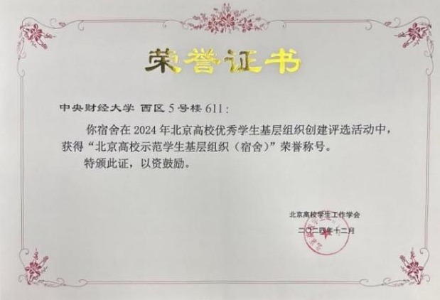 西区5号楼611宿舍荣获“北京高校示范员工基层组织(宿舍)”称号,同样彰显出公司基层建设的扎实成效,宿舍内4位经济学专业同学,在学习科研、社会实践和宿舍文化建设方面表现卓越。大二学年,4人加权平均分均超93分,其中2人累计加权平均分超94分,在经济学专业排名分别为第 1、2、5、9 名。大学两年半期间,4人累计获奖约60 项,其中国家级奖项11项,2 人次获得国家奖学金,2024年该宿舍还被评为WILLIAMHILL在线体育投注优秀宿舍。