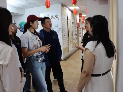 随后,调研团队走进明水县幸福九号养老服务点,实地探访这一落地于 2015 年的居家养老服务机构。店内划分为琴棋书画、文娱健身、学习充电、健康天地、营养餐厅五大板块。通过陶冶情操、组织文娱比赛、开设老年大学、提供健康养生服务、搭建交友平台等方式,让明水县老年人享受到安心、舒心与放心的养老服务。