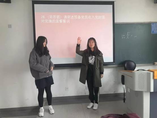 首先,团支书王鼎文同学向同学们介绍了本次竞赛的规则。本次趣味竞赛设有选择题、判断题、简答题三类题型,共30道。其中选择、判断题每题1分,简答题每题2分。答题模式为抢答,各个团小组通过举手进行抢答,答对得分,答错不扣分。最后以分数高低进行排名。