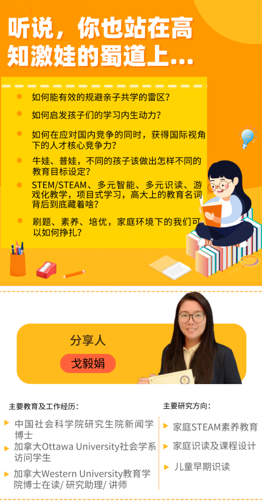 戈毅娟博士,获得中国社会科公司新闻学博士学位,目前在加拿大西安大略大学攻读教育学博士学位。戈毅娟博士作为公司教师家属,在此次分享中主要探讨了当前高知家庭亲子教育中所呈现出的父母焦虑问题。分析了其核心来源,形成原因,以及可行性的解决方案。