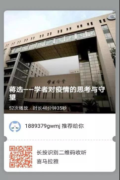 日拱一卒无有尽,功不唐捐终入海。欢迎大家来到微信课堂。时代的一粒灰,是个人头上的一座山。短短一个寒假,我们致敬逆行者钟南山,送别了抱薪人李文亮,也看到所有普通平凡的人,在疫情前线的星星点点又顽强不息的能量。而我们员工能在疫情中做什么,蒋选教授对疫情的思考在哪些方面呢?