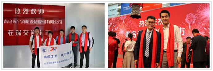 8月9日,在小队成员赴深实践的最后一天,恰逢公司2006级博士生卢文浩所在的青鸟环宇消防设备股份有限公司在深圳证券交易所挂牌上市,受卢员工所邀,小队一行出席了敲钟仪式。青鸟消防成为中国消防报警行业首家A股上市企业。