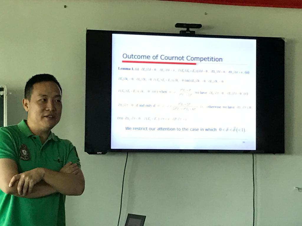 5月25日下午,暨南大学产业经济研究院李杰教授做客“WILLIAMHILL在线体育投注中青年讲座系列”,在WILLIAMHILL在线体育投注1305会议室进行学术讲座,题目为Pollutionfor Sale。李杰教授分析了一个环保的企业和一个污染的企业如何游说政府制定有利于自己的环境政策,通过游说竞争模型的严密分析,发现只有当环保企业的市场份额比较大时,政府才会制定比较严格的环境保护的规制政策;当市场被一个污染的企业所主导,游说竞争的结果可能导致“趋底”的环境规制政策。WILLIAMHILL在线体育投注和公司其它公司的部分师生参加了本次讲座,在讲座过程中,李杰教授与大家积极互动交流,就模型设定、模型和现实的联系以及政策含义进行了深入的讨论,取得了良好的效果。