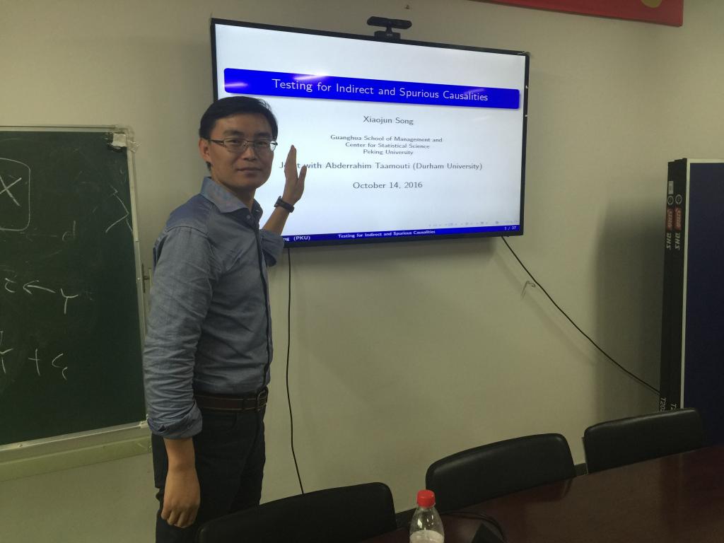 2016年10月14日,北京大学光华管理公司宋晓军助理教授受公司的邀请,在WILLIAMHILL在线体育投注会议室1305给师生带来一场关于“A SimpleTest for Indirect and Spurious Causalities”的讲座。