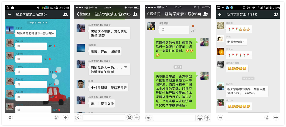 本学期“梦工场”微课堂共举办10次线上讲座,授课教师根据个人特点、学科背景、研究领域做了各具特色的讲座。张琥老师从自己的研究兴趣博弈论出发做了题为“2014诺奖得主梯若尔与博弈论”讲座;李新荣老师根据个人出国留学经历做了题为“如何申请就读美国研究生项目”的讲座;学术达人张彩萍老师根据其论文写作经验做了题为“如何写高质量的学术论文”的讲座;部分老师从专业角度出发,做了富有思想性与学术意义的讲座。徐华副教授的“经济学的思考方式”受到广泛关注;高伟老师根据自己的研究兴趣作了题为“货币制度与铸币税”的讲座;兰日旭老师的“新型大国关系构建”切中时事热点,广受好评;周战强老师从自己的研究领域出发做了题为“行为金融漫谈”的讲座;于爱芝老师做了题为“农产品目标价格改革的重点与难点”的讲座。李彬老师压轴出场,根据自己的研究课题和实验研究情况做了题为“受贿与性别关系研究”的讲座,激发了大家对实验研究的广泛兴趣。