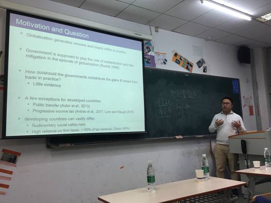 戴觅副教授首先介绍了本次讲座的主题:中国政府如何应对贸易自由化带来的冲击。本文介绍了中国加入了WTO以后,进口关税的下降对我国国内税收政策、公共服务供给和社会福利保障三方面的影响,及中国主要以国内税收政策来缓解贸易自由化带来的冲击。