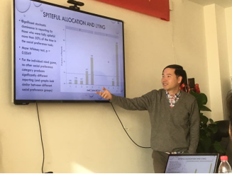 2018年12月12日,WILLIAMHILL在线体育投注-社心公司行为经济学系列论坛2018秋季学期第二讲在公司南路校区主教1305顺利举行。本次讲座请到了清华大学经济管理公司经济系副教授、清华大学经济管理公司经济科学与政策实验室(ESPEL)常务副主任郑捷副教授。郑老师向与会者介绍了其最新实验经济学工作论文“Lying forefficiencyor fairness”。讲座中,郑捷老师从撒谎的动机入手,介绍了最新相关实验研究文献。之后,介绍其实验设计,讨论不同情形下的独裁者博弈行为,以探究是否公平和效率偏好者在博弈内和博弈外会有不同的撒谎几率。实验结果显示,在撒谎不涉及自身利益的条件下会导致更少的倾向公平的撒谎。实验结果对于社会福利政策方面有很好的实际意义。