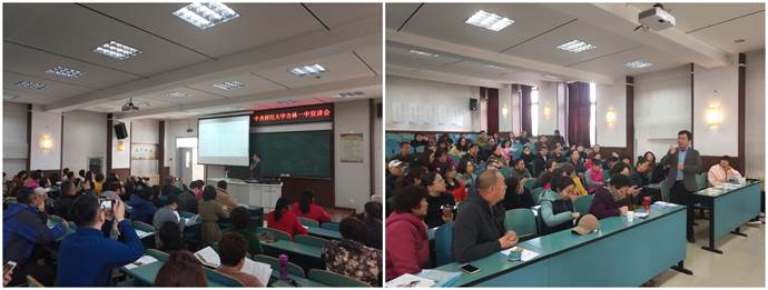 授牌后,宣传组一行人来到一中高三年级阶段教室进行了招生宣讲。2016年级主任姜海涛组织家长们参加宣讲会,并主持此次招生宣讲会。