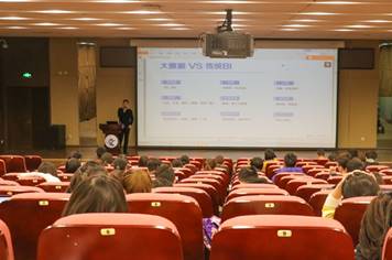 最后,肖铨武博士对未来大数据的发展前景进行了展望。如今的大数据应用十分广泛,不难预料到未来的大数据面貌:可供人们分析处理的数据将会越来越丰富,处理大数据的算法将不断进步,分析大数据的工具也会不断完善。现今社会大众对于大数据应用的认知度在持续提升,而且对于学习大数据技术有非常高的热情,同时资本市场也极其看好大数据应用行业,这对于同学们来说无疑是一个难得的机遇。肖铨武博士结合了自己的个人履历,向同学们展示大数据技术应用范围之广。无论是在电子商务,金融等领域,还是在看似与大数据毫不相关的生物学,广告,旅游等领域,大数据技术都有一番用武之地。由此可见,树立大数据意识,掌握大数据技术,对于就业无疑是有利的工具。尽管行业前景良好,肖铨武博士也提到,目前互联网上以大数据为幌子招摇撞骗的现象依然屡见不鲜,这是大数据技术应用过程中有待改进的地方,他也期待着作为行业未来的同学们能够努力学好基础理论知识,积极开阔眼界,成为大数据未来的开拓者。