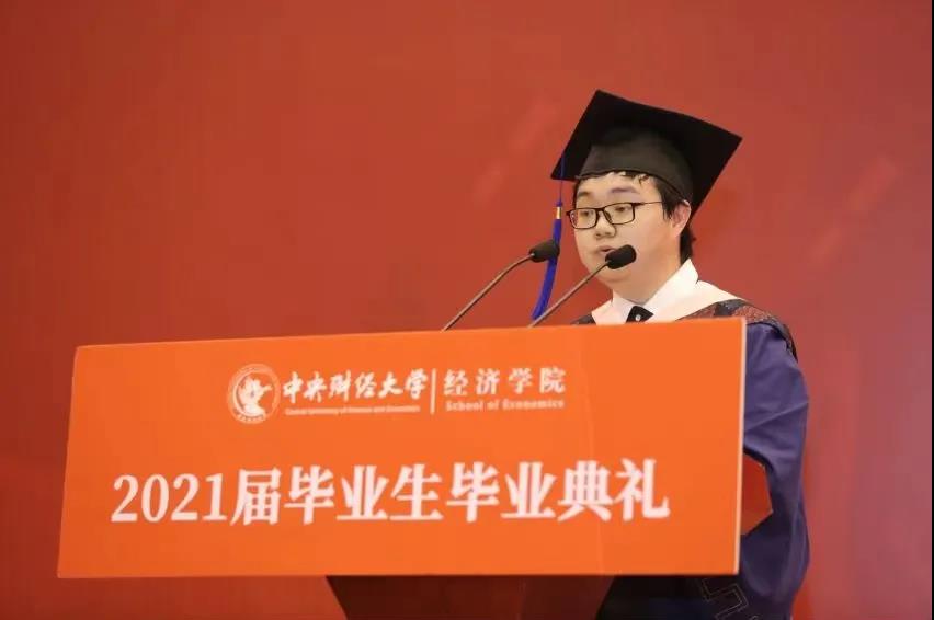 千言万语诉不尽离愁别绪、道不完恩情谢意,此时此刻,我想再对我的导师陈斌开老师,以及每一位本硕博的指导老师、教学老师说一声谢谢,谢谢你们以学识服人以文化育人,带我们领略经济学殿堂的浩瀚广袤和经济学者的治学严谨;也想再对我的辅导员赵若思老师,以及每一位与我们生活息息相关的行政老师说一声谢谢,谢谢你们的夜以继日无微不至,向我们传递公司最温暖的关怀和最及时的帮助;还想对在座的同学们说一声谢谢,感谢相遇感谢陪伴,感谢我的校园生活一路有你;最后,让我们再对自己说一声谢谢,感谢你不曾放弃始终拼搏,无论是一次次的学术难题还是又又一次的“史上最难毕业季”,你始终在奔跑始终在前进,辛苦了。
