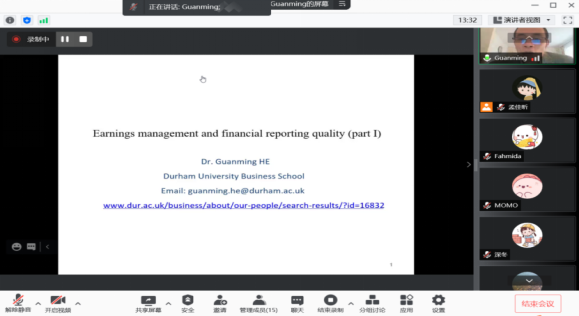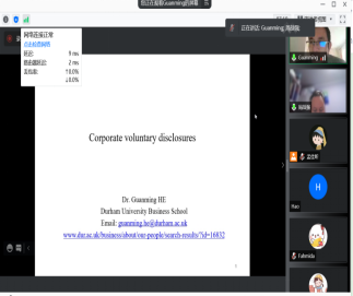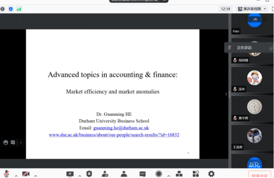 2021年9月20日至28日,英国杜伦(Durham)大学商公司何冠明副教授应WILLIAMHILL在线体育投注邀请,使用腾讯会议APP讲授行为金融专题研究短期课程。WILLIAMHILL在线体育投注部分师生参加了此次课程。