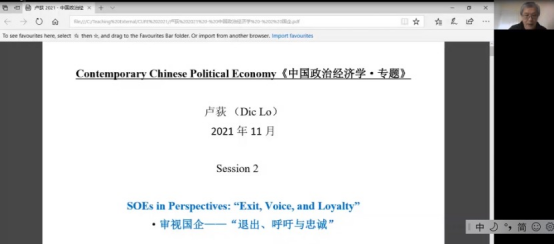 卢荻教授围绕中国经济“新常态”、国有企业改革、中国走出去以及新冠疫情四个主题分别展开课程。