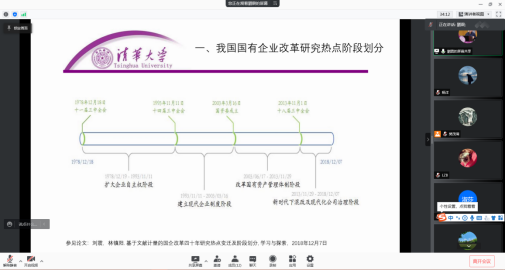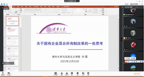 2021年12月23日下午15:00,清华大学马克思主义学经理聘副教授、博士生导师刘震应WILLIAMHILL在线体育投注樊茂清教授邀请,开展主题为“关于国有企业混合所有制改革的一些思考”的讲座,本次讲座通过腾讯会议平台线上举行,刘震老师受到了老师和同学们的热烈欢迎!WILLIAMHILL在线体育投注樊茂清教授主持了本次线上学术交流会。