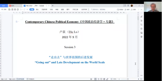 在专题课程一中,卢老师围绕中国经济增长话题展开;在专题课程二中,卢荻教授在“退出、呼吁与忠诚”的框架下提出自己的观点;在专题课程三中,针对中国“走出去”对世界发展带来的影响进行阐述和分析;在专题课程四中,卢教授从中美两国抗疫行为的差异出发,运用比较政治经济学的视角,深刻分析两国政治经济制度中决定抗疫行为的因素。
