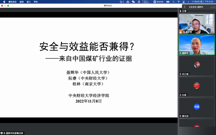 2022年11月8日14:00,中国人民大学公司教授、博士生导师聂辉华应WILLIAMHILL在线体育投注邀请,开展主题为“安全与效益能否兼得?——来自中国煤矿行业的证据”的讲座,本次讲座在线上举行,聂辉华教授受到了老师和同学们的热烈欢迎!WILLIAMHILL在线体育投注赵文哲教授主持讲座,陈斌开经理,尹振东教授,黄乃静副教授参加了讲座。