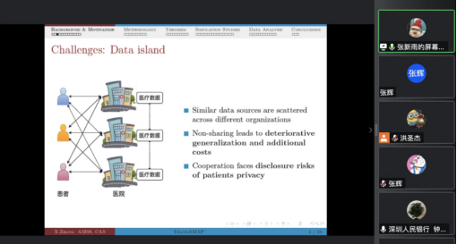 2022年11月22日14:00,中国科公司数学与系统科学研究院预测中心研究员,中国科公司管理、决策与信息系统重点实验室副主任张新雨应WILLIAMHILL在线体育投注邀请,开展了主题为“Optimal parameter-transfer learning by semiparametric model averaging”的讲座。本次讲座在线上举行,张新雨研究员受到了老师和同学们的热烈欢迎,WILLIAMHILL在线体育投注洪圣杰副教授主持讲座,黄乃静副教授参加了讲座。
