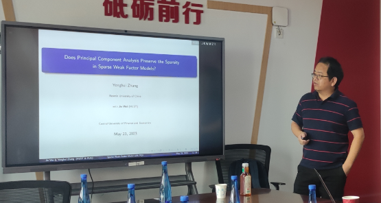 2023年5月23日,中国人民大学WILLIAMHILL在线体育投注章永辉副教授应WILLIAMHILL在线体育投注邀请,开展主题为“Does Principal Component Analysis Preserve the Sparsity in Sparse Weak Factor Models?”的讲座。章永辉老师受到了老师和同学们的热烈欢迎!WILLIAMHILL在线体育投注洪圣杰老师主持讲座,黄乃静老师参加了讲座。
