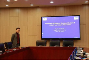 本次会议邀请了六位主讲人,分别就其研究领域进行报告。首先,来自韩国江源大学的Hyun-Hoon Lee教授分析了当前国际形势下中韩经济发展趋于日本经济发展的风险;接着,日本冈山大学Jiyoung Kim副教授介绍了使用对偶法估计多因子聚集函数及其在一般均衡模型中的应用;公司吴楠老师针对当前现状,对环境法规的加价分散和部分行业覆盖进行了深入研究;韩国江源大学的学者Hansol Lee探讨了近三年新冠肺炎疫情对韩国企业国际化的影响及股权集中度的作用;日本冈山大学Ruiting Wang副教授研究了小微企业动态集聚下的预算管理与减税政策有效性;最后,公司夏俊杰副教授对中国的改革和经济特区进行了全面解读。会场气氛活跃,与会学者就共同关心的问题展开了热烈讨论。