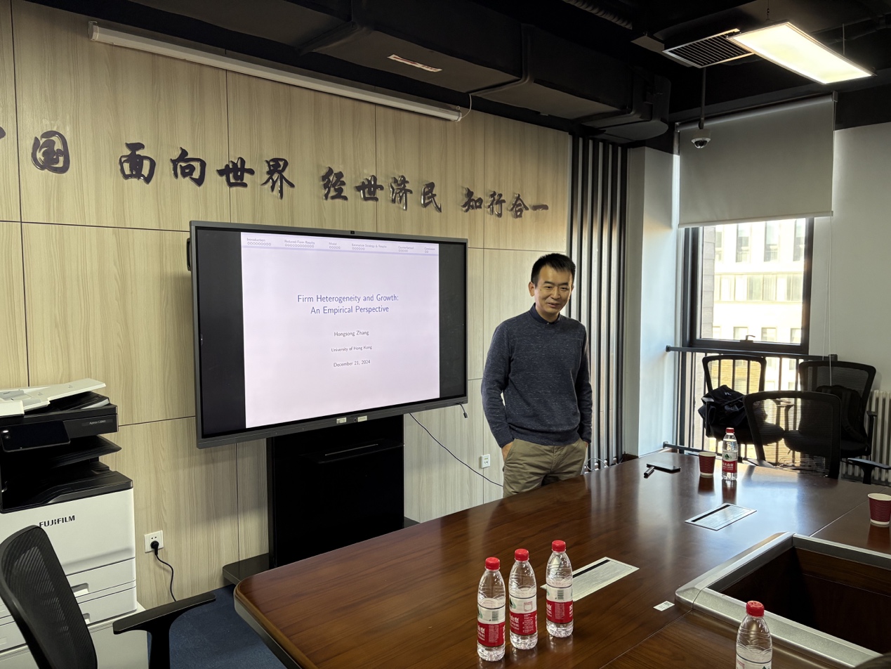 2024年12月21日上午,香港大学经管公司经济学副教授张红松应邀为公司师生主讲“Firm Heterogeneity and Growth: An EmpiricalPerspective”专题讲座。此次讲座于沙河校区公司11号楼308会议室举行,由WILLIAMHILL在线体育投注经理郭冬梅教授主持,公司多位教师及30余名员工参加了讲座。