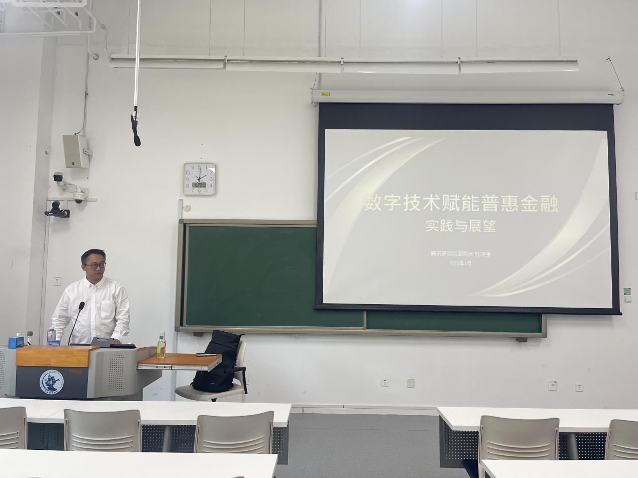 在数字技术飞速发展的当下,普惠金融迎来了新的发展契机。2025年4月29日下午,腾讯研究院副经理杜晓宇带来了一场以“数字技术赋能普惠金融:实践与展望”为主题的精彩讲座,为2024级国际商务专硕班的同学们深入剖析普惠金融在数字时代的发展变革、科技赋能的实践成果以及未来的发展方向。