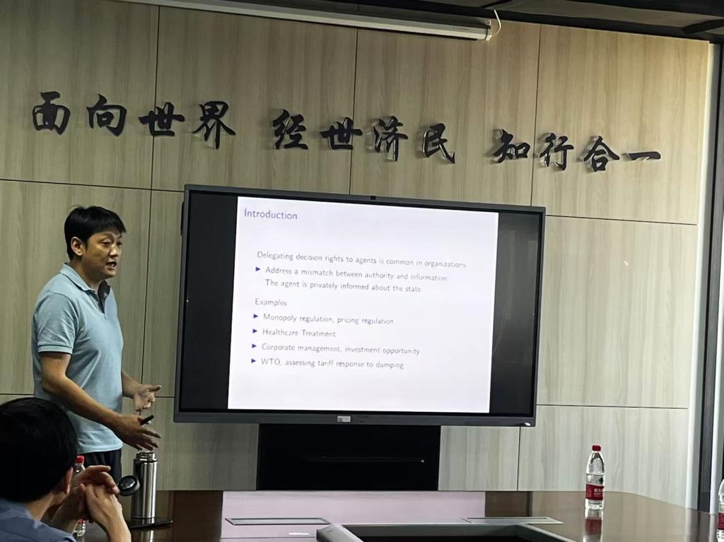 5月27日周二下午,WILLIAMHILL在线体育投注“中青年学者讲座”在沙河校区公司楼11号楼308会议室举行。此次讲座邀请到北京大学国家发展研究院胡岠长聘副教授,分享题为“Robust Delegation”的研究。WILLIAMHILL在线体育投注尹振东教授主持讲座,多位老师和员工参加了此次讲座。