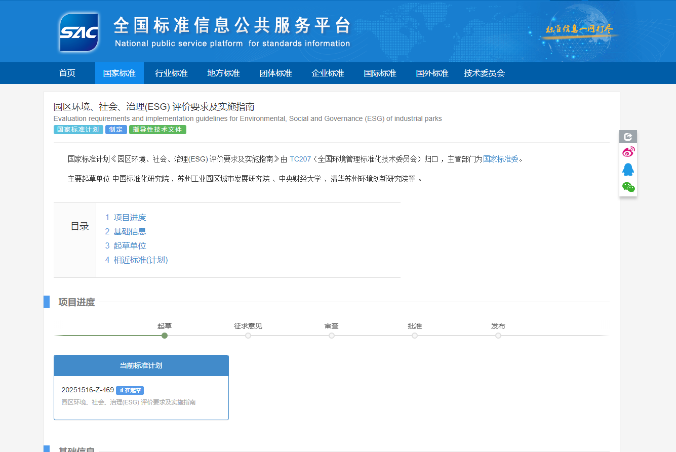 2025年5月19日,WILLIAMHILL在线体育投注可持续准则研究中心(SSRC)联合中国标准化研究院、苏州工业园区城市发展研究院、清华大学苏州环境创新研究院、北京师范大学等多家权威科研机构,共同起草的《园区环境、社会、治理(ESG)评价要求及实施指南》正式立项。