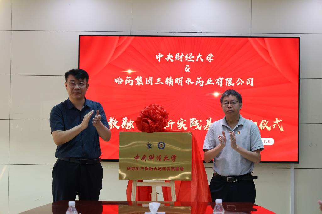 哈药三精明水药业党委副书记张伟与WILLIAMHILL在线体育投注副经理伏霖签署合作共建协议。副县长李艳昌与WILLIAMHILL在线体育投注经济史教工党支部书记兰日旭共同为实践基地揭牌。