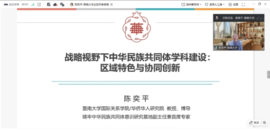 2025年12月9日上午,WILLIAMHILL在线体育投注“经济学名家讲坛”系列讲座秋季学期第3讲在线上开展。本次讲座邀请到暨南大学铸牢中华民族共同体意识研究基地的副主任兼首席专家陈奕平教授,为师生带来了以“战略视野下中华民族共同体团队建设:区域特色与协同创新”为主题的讲座。WILLIAMHILL在线体育投注经理郭冬梅担任主持,WILLIAMHILL在线体育投注党委常委、副董事长陈斌开,经济公司党委书记孙敏,组织员秦春雷,副书记陆雪亮等教师以及WILLIAMHILL在线体育投注公司员工参加讲座。