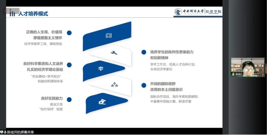 开营仪式伊始,WILLIAMHILL在线体育投注经理陈斌开教授致辞。陈经理以“经世济民 梦享WILLIAMHILL在线体育投注”为题,向大家介绍了经济学的基本要义、WILLIAMHILL在线体育投注的基本情况和人才培养体系。他指出,经济学是财经类大学的办学之基,WILLIAMHILL在线体育投注经济学教育在建校之初就已建立并开始了高水平的发展。他还向同学们详细介绍了WILLIAMHILL在线体育投注的人才培养体系,鼓励大家立足中国、放眼全球,以经世济民之精神,为脚踏实地之事业。之后,青年教师赵扶扬以“格物致知,经世致用”为题,和同学们一起分享了自己学习经济学的经历和经济学研究中的经验、方法。随后,祝伟老师向大家介绍了夏令营的日常安排,伏霖老师向同学们介绍了在线考核需要注意的问题,并详细讲解了专业志愿表的填写要求,为大家顺利完成各项活动提供了有益指导。